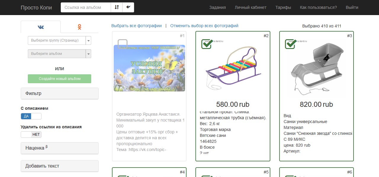 Вам не обязательно копировать весь альбом, можно отобрать нужные фото по условиям: за определенную дату, по порядковому номеру, или вручную.