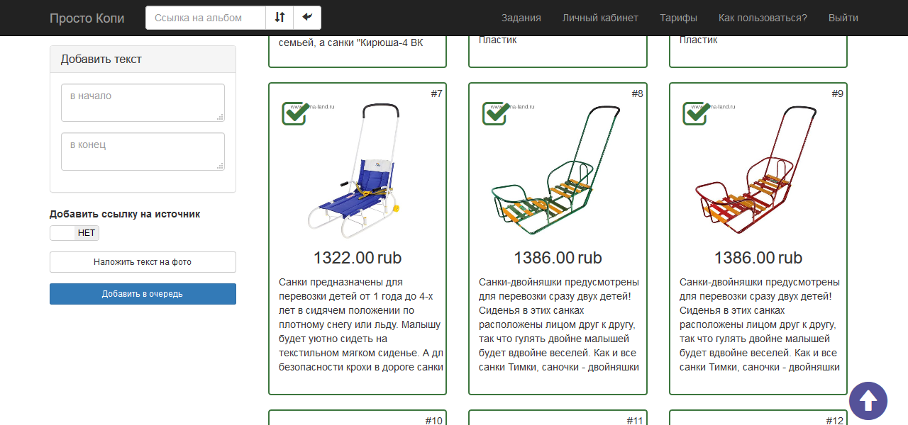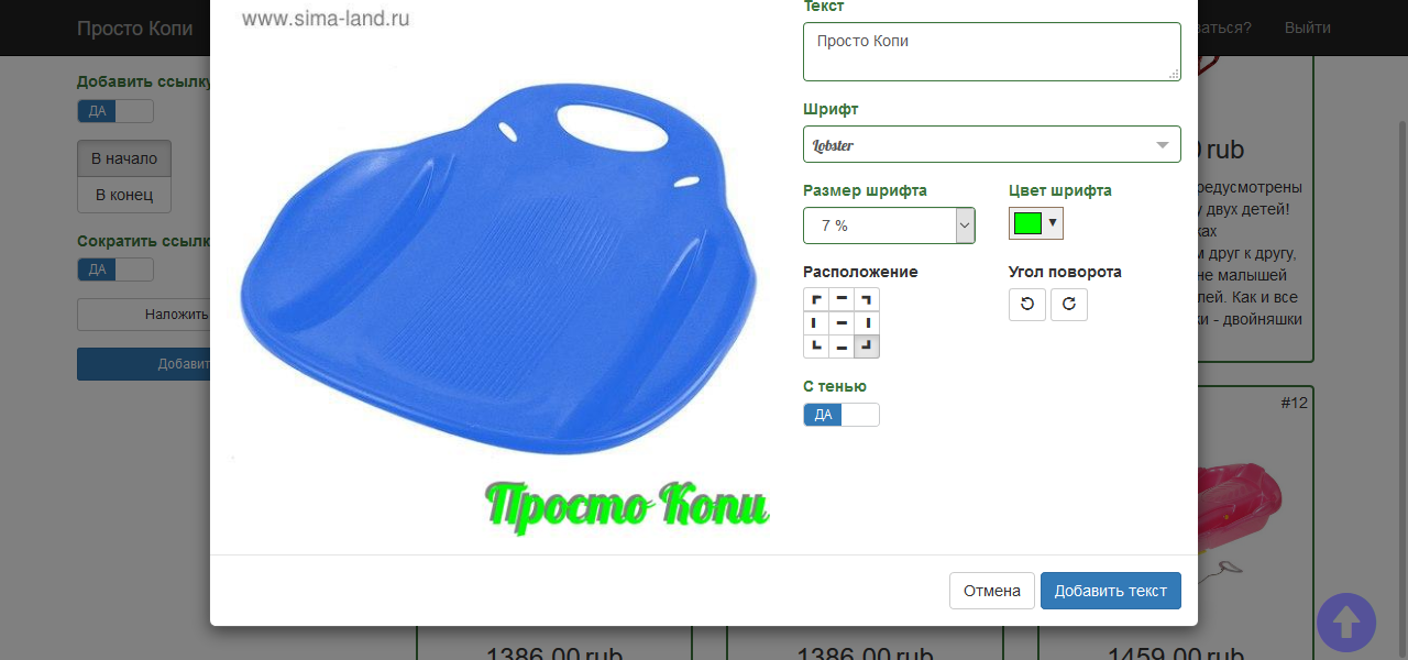 Можно добавить свой текст к описанию, к цене и даже наложить на фото.